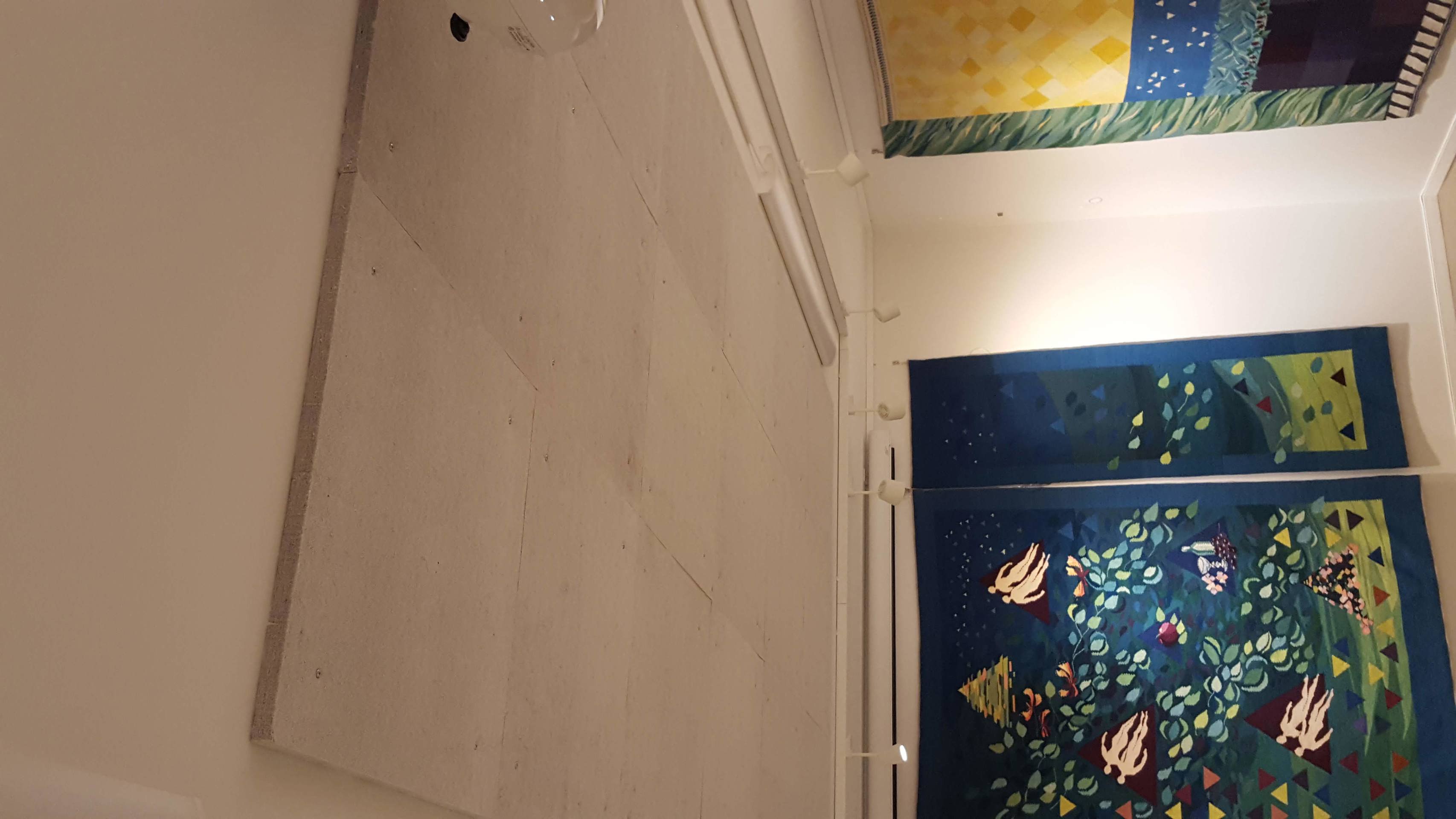 Montering av lyddempende plater i taket for å få ned akustikken.